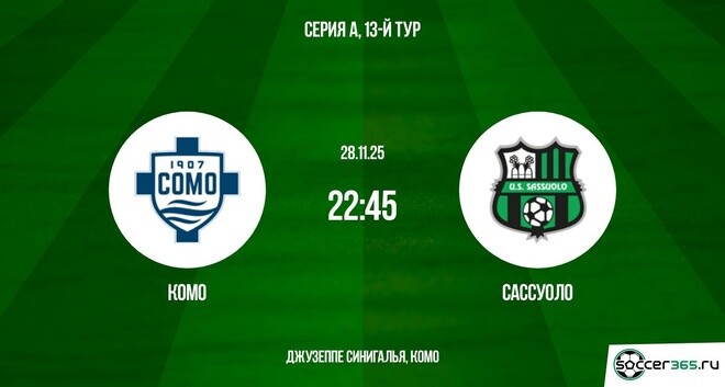 Рассказываем о раскладах на матч Комо и Сассуоло в рамках тринадцатого тура чемпионата Италии сезона-2025/26.