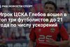 Игрок ЦСКА Глебов вошел в топ три футболистов до 21 года по числу ускорений
