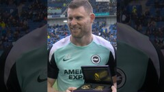 A Special Pitchside Presentation For James Milner ?? #brightonandhovealbion #premierleague